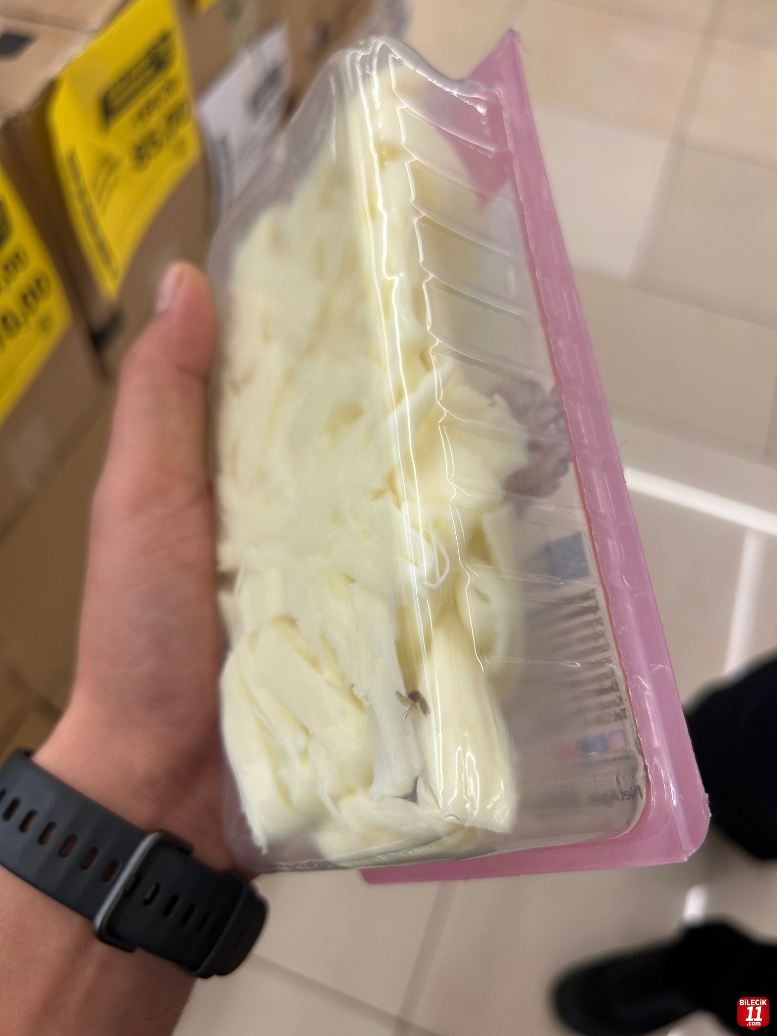 Bilecik Belediyesi Zabıta Müdürlüğü ekipleri, bir vatandaşın şikâyeti üzerine zincir marketlerde denetim yaptı. Denetimde, son kullanma tarihi geçmemiş kapalı ambalajlı peynirin içinde sinek ölüsü bulundu.