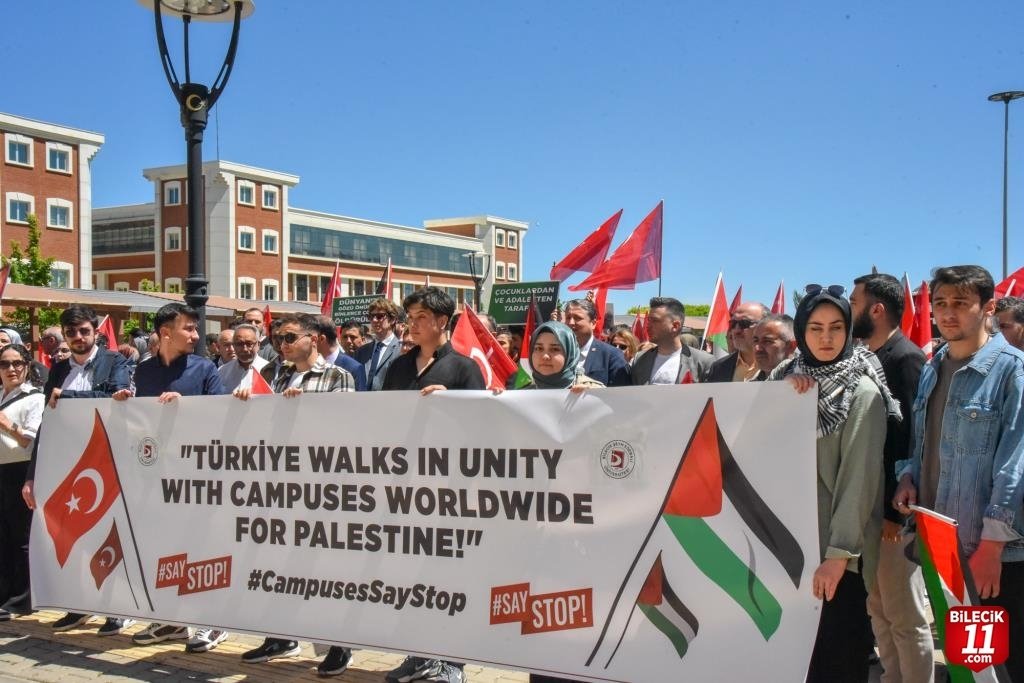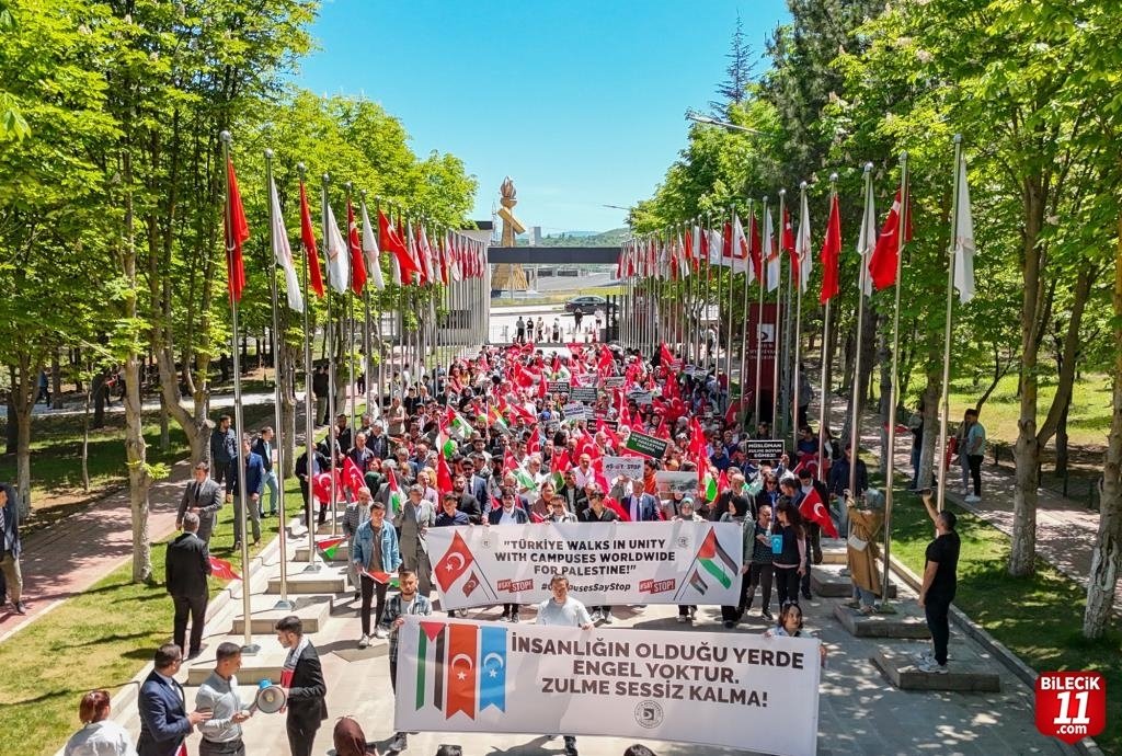 Bilecik Şeyh Edebali Üniversitesi’nde(BŞEÜ) Filistin ve Doğu Türkistan’a destek yürüyüşü düzenlendi.